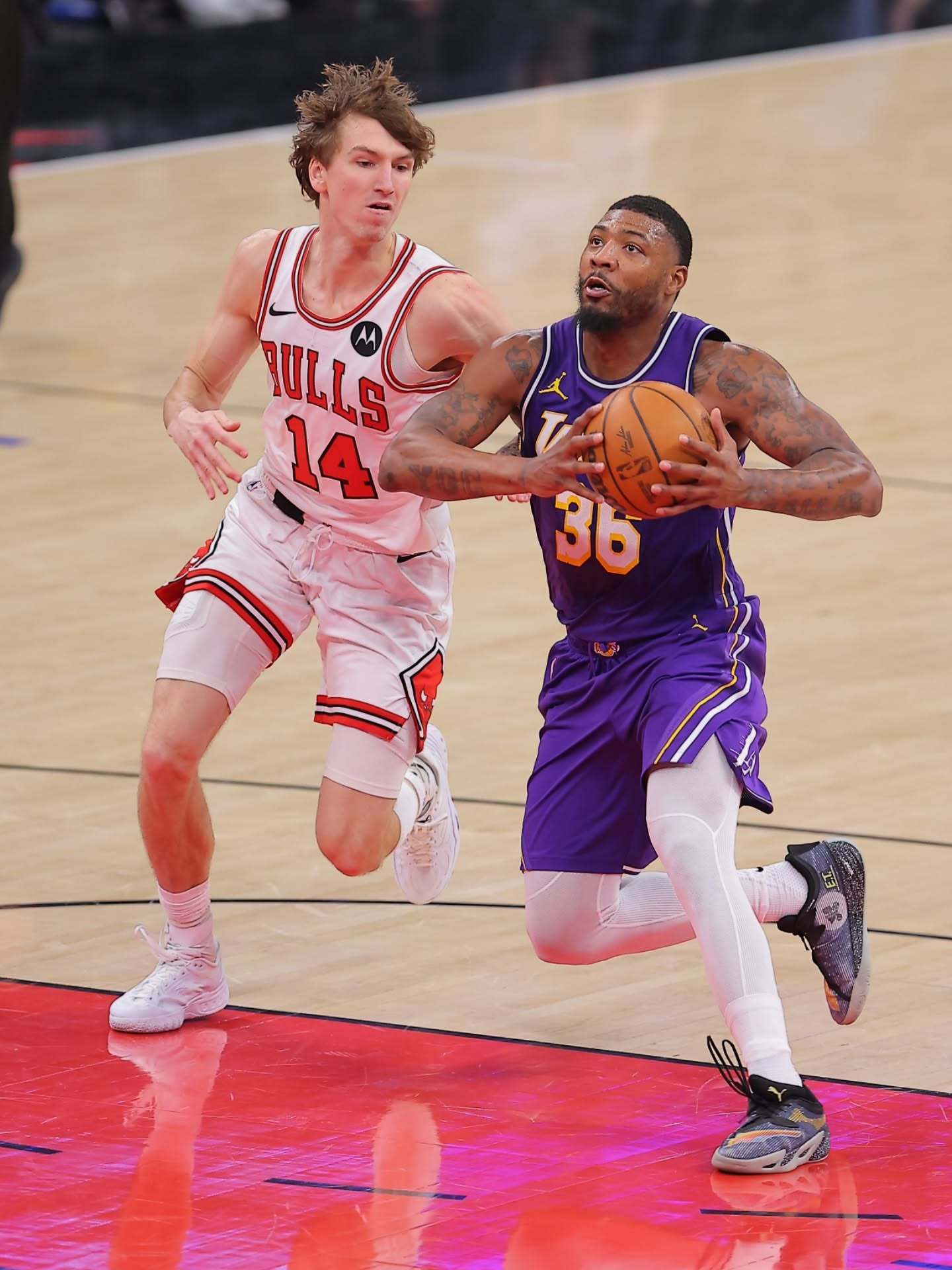 值得一提的是,湖人上一场刚刚击败了4连胜的独行侠,这场比赛又击败了4连胜的公牛,这足以说明现在的湖人可不是只会虐菜,是真的够强,能正面击败各种状态火热的队伍。并且湖人的变好是全方面的,比如雷迪克的智商又占领高地了,开始对阵容布置进行了有效的调整,最近他总在关键时刻弃用艾顿,使用攻防俱佳的詹姆斯+东契奇+斯马特+拉拉维亚+八村垒的五锋阵容,这套阵容机动性强,身高尺寸够,攻防两端很难被打爆。