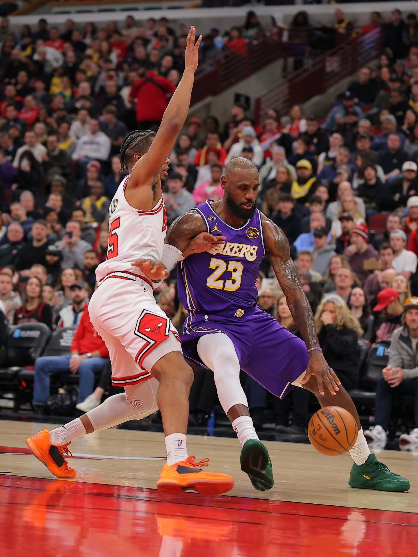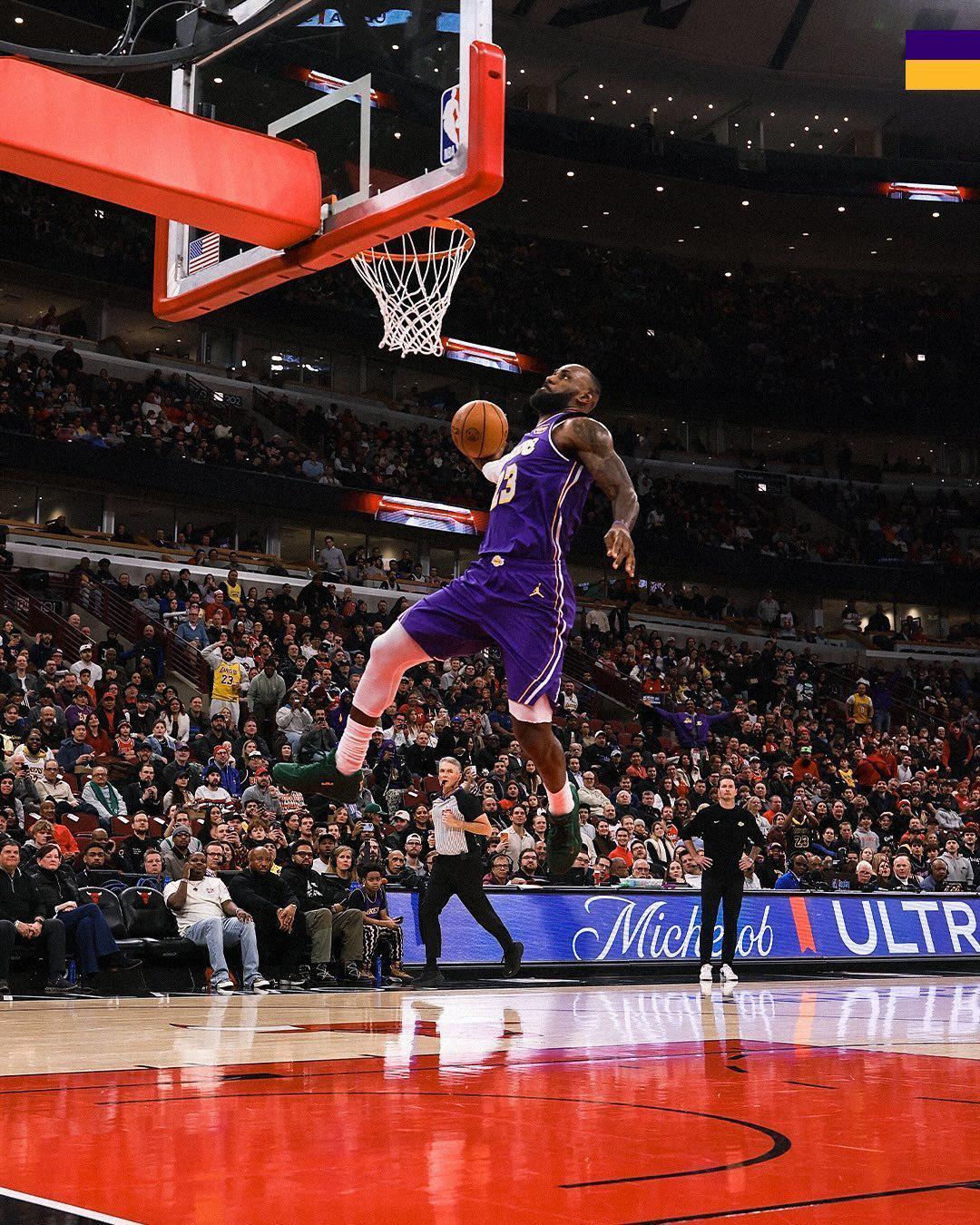 最后需要说的就是詹姆斯,本场比赛,詹姆斯出战33分钟,投篮19中9,三分4中1,得到24分5篮板3助攻1抢断,其中上半场詹姆斯就拿到20分,一战创下3大纪录。第一,詹姆斯上半场砍下20分,创本赛季上半场得分新高。第二,詹姆斯成为了历史上首位在41岁还能半场砍下20+的球员。第三,詹姆斯成为NBA历史首位作为对手在芝加哥联合中心得分超过1000分的球员,没有错,41岁的詹姆斯还在创造各项伟大的数据,而在数据之外,更关键的地方在于,湖人现阶段的各种提升,其实是围绕詹姆斯展开的。
